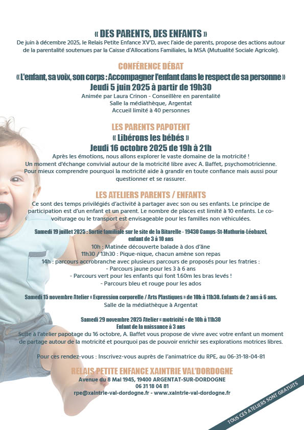 ATELIERS - DES PARENTS/DES ENFANTS 2025