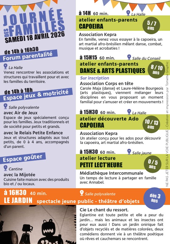 Un forum parentalité (de 14h à 16h30) avec les structures qui travaillent pour et avec les familles sur le territoire