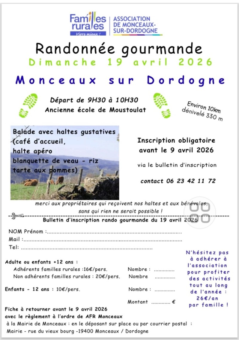 et 10h30. 10km de balade, chacun à son rythme avec haltes gustatives sur le parcours. Inscription obligatoire avant le 9 avril.