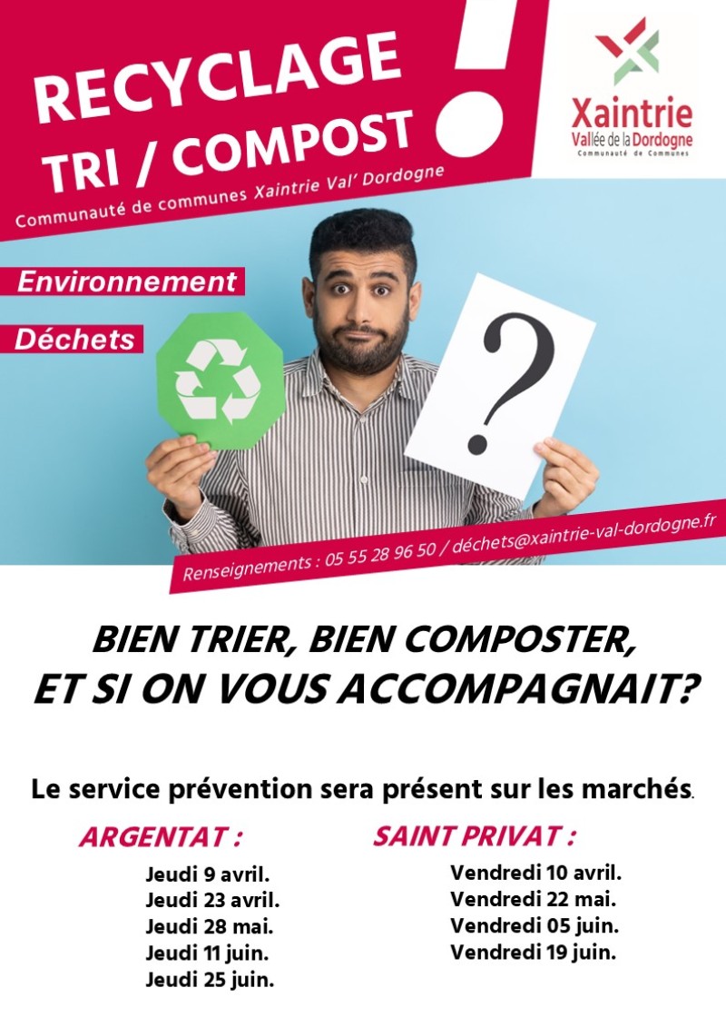 Le service Prévention Déchets de la Communauté de Communes Xaintrie Val' Dordogne vient à votre rencontre sur les marchés d'Argentat-sur-Dordogne et Saint-Privat.