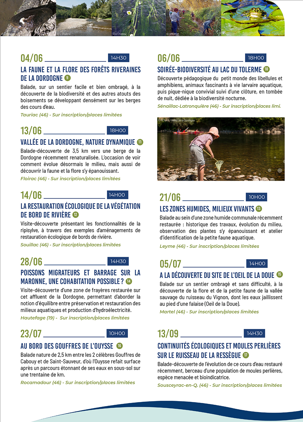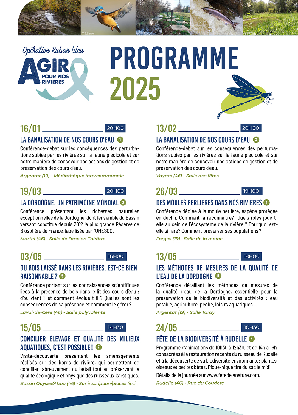SORTIES ET CONFÉRENCES DÉCOUVERTE DE LA VALLÉE DE LA DORDOGNE ET DE SES AFFLUENTS 2025